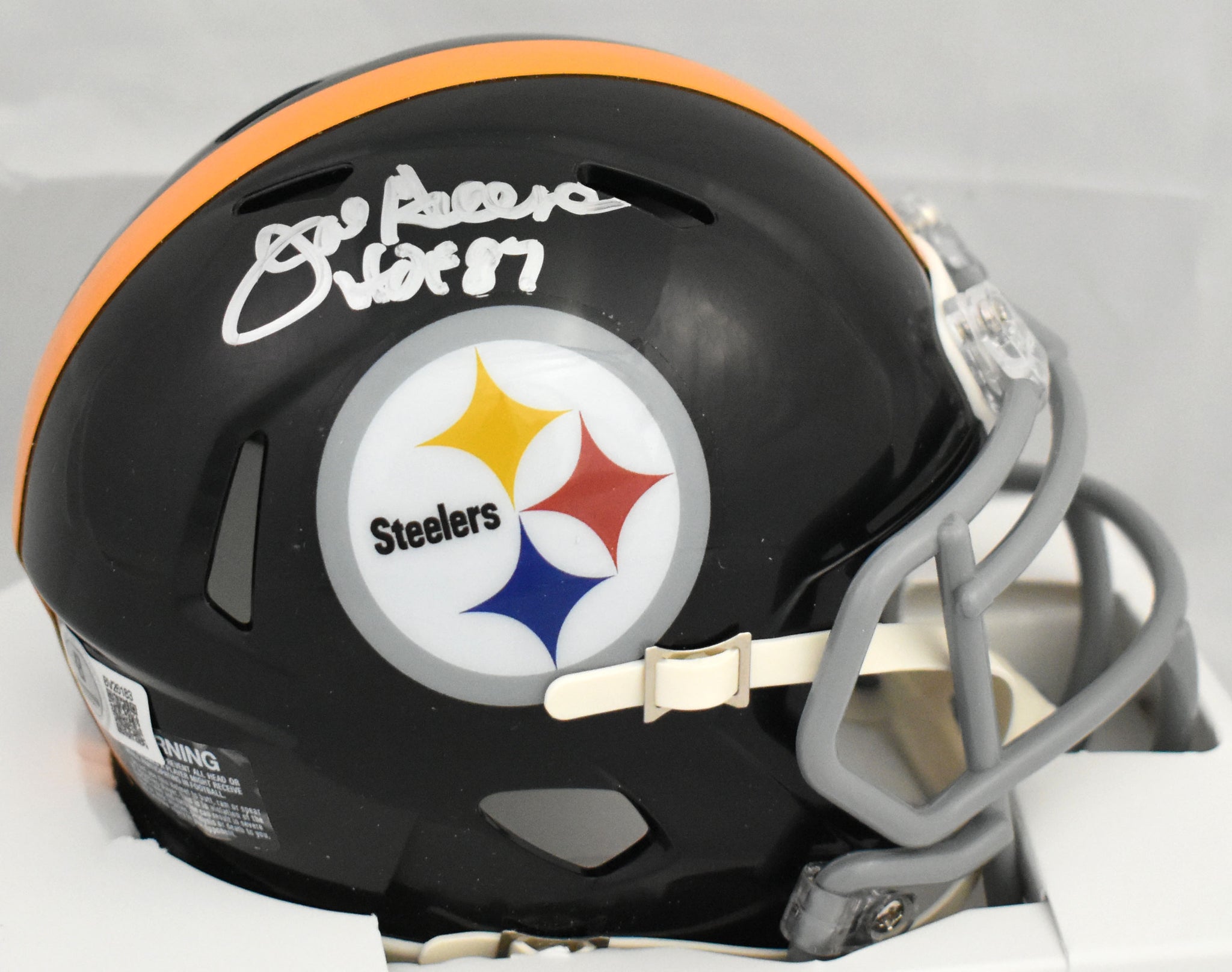 This is a hand autograph of Joe Greene of the Pittsburgh Steelers on a Riddell Speed Mini Helmet. Inscribed HOF. This item has a Beckett Authentication, which comes with a numbered hologram and a QR code for verification. You can view this item on the Beckett Authentication website. It was signed either at a public autograph appearance or a private signing. This is a stock photo of the item. Although you may not receive this exact item, the item you receive is virtually identical and brand new in great shape.