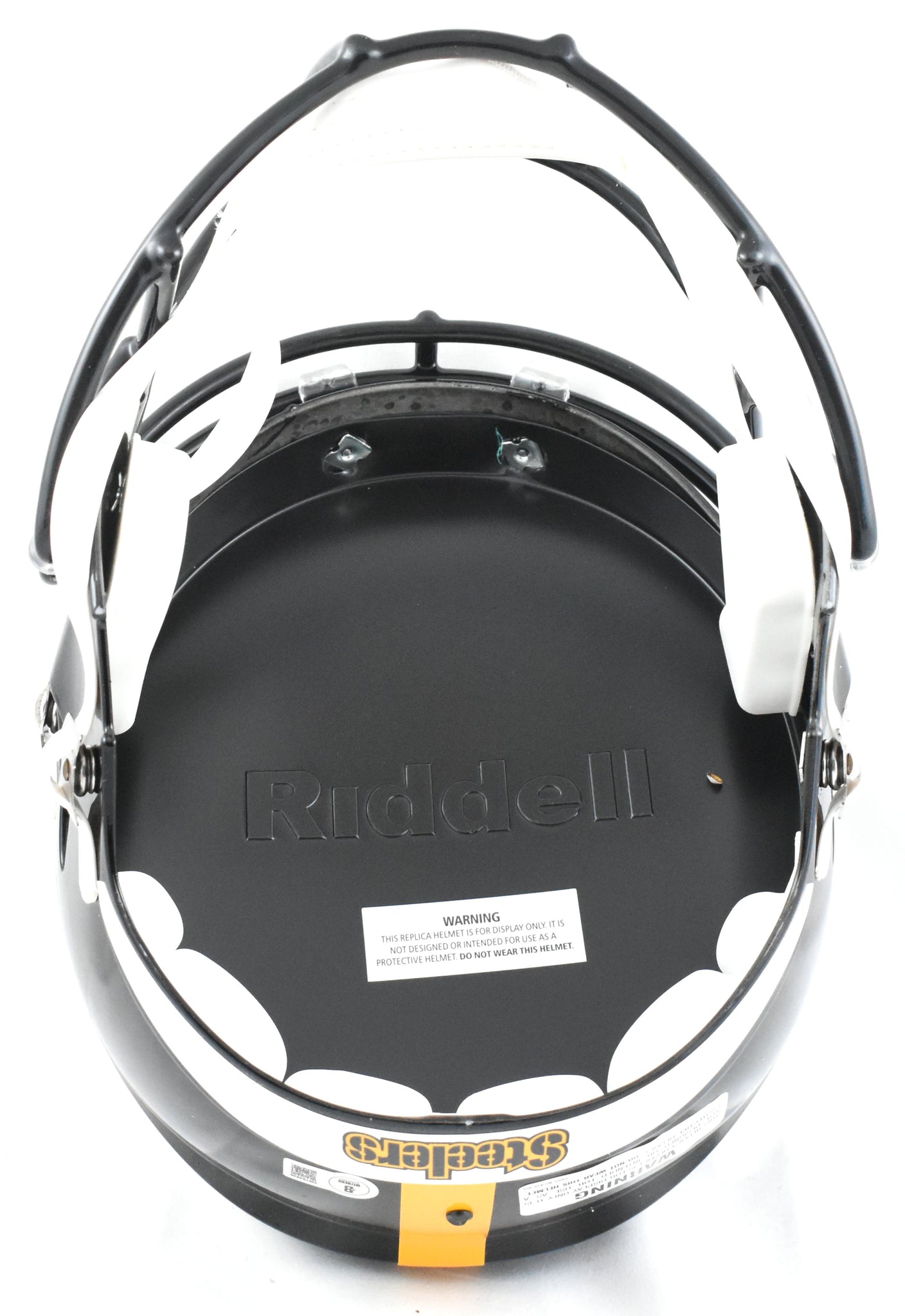 This is a T.J. Watt of the Pittsburgh Steelers Autographed Riddell football full size Speed Replica helmet. This item has a Beckett Witnessed Authentication, which comes with a numbered hologram and a QR code for verification. You can view this item on the Beckett Authentication website and it shows when and where the item was signed. It was signed either at a public autograph appearance or a private signing. This is a stock photo of the item. Although you may not receive this exact item, the item you receive is virtually identical, brand new, and in great shape. *Autograph location may vary*