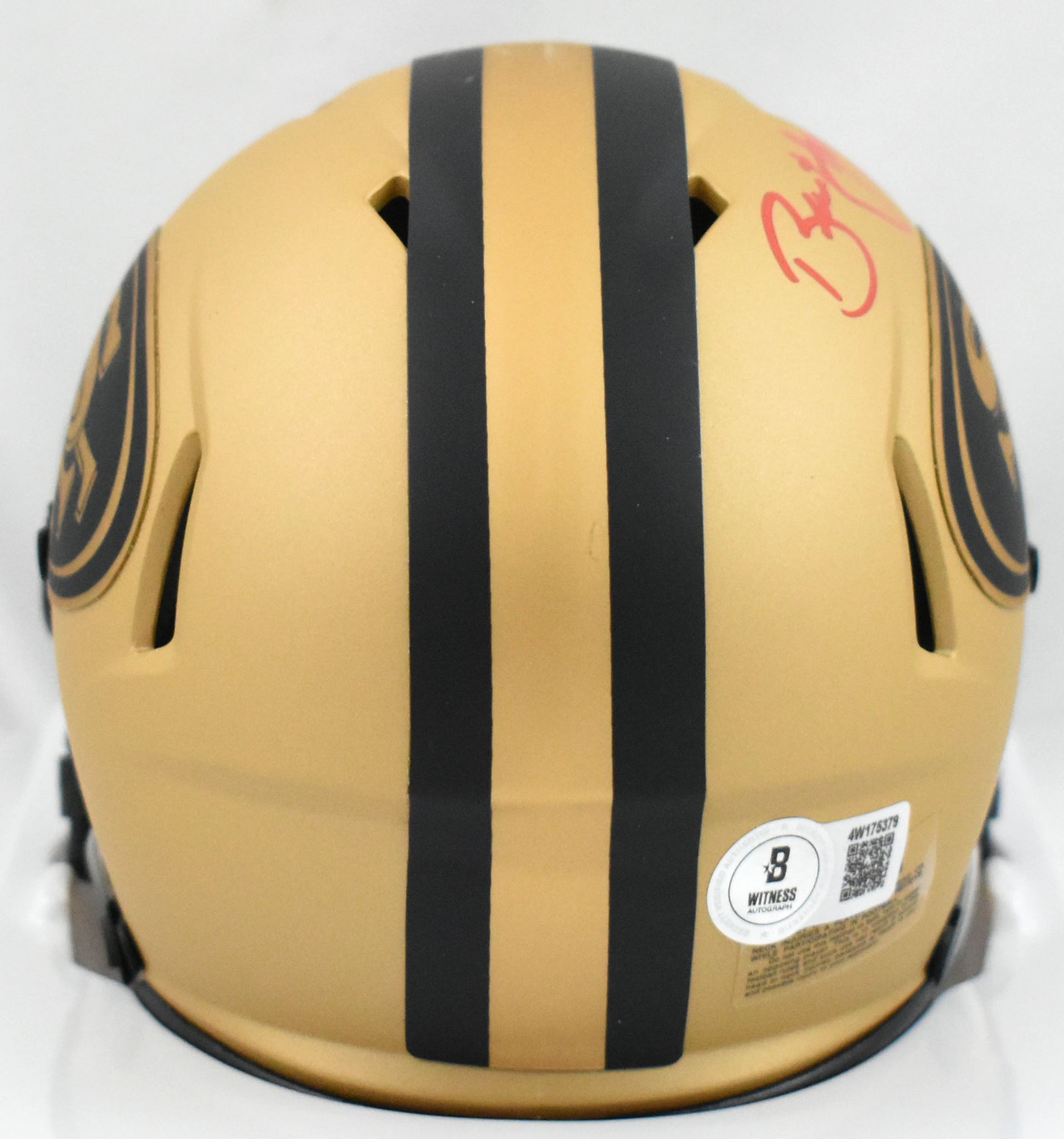 This is a hand autograph of Brent Jones of the San Franciso 49ers on a Riddell Football Rave Speed Mini Helmet. This item has a Beckett Witnessed Authentication, which comes with a numbered hologram and a QR code for verification. You can view this item on the Beckett Authentication website, and it shows when and where the item was signed. It was signed either at a public autograph appearance or a private signing. This is a stock photo of the item. Although you may not receive this exact item, the item you receive is virtually identical and brand new in great shape.