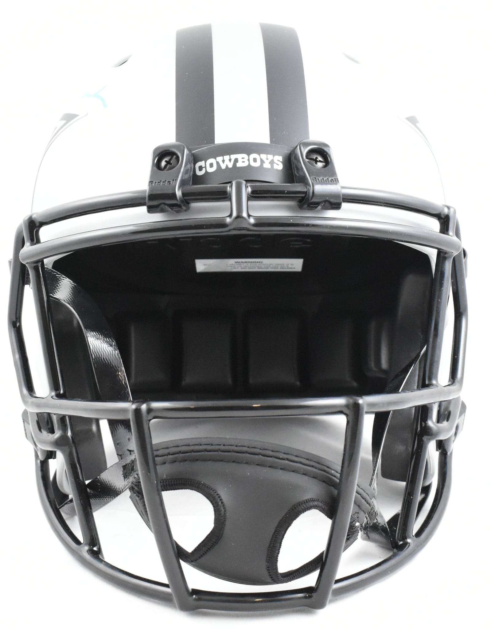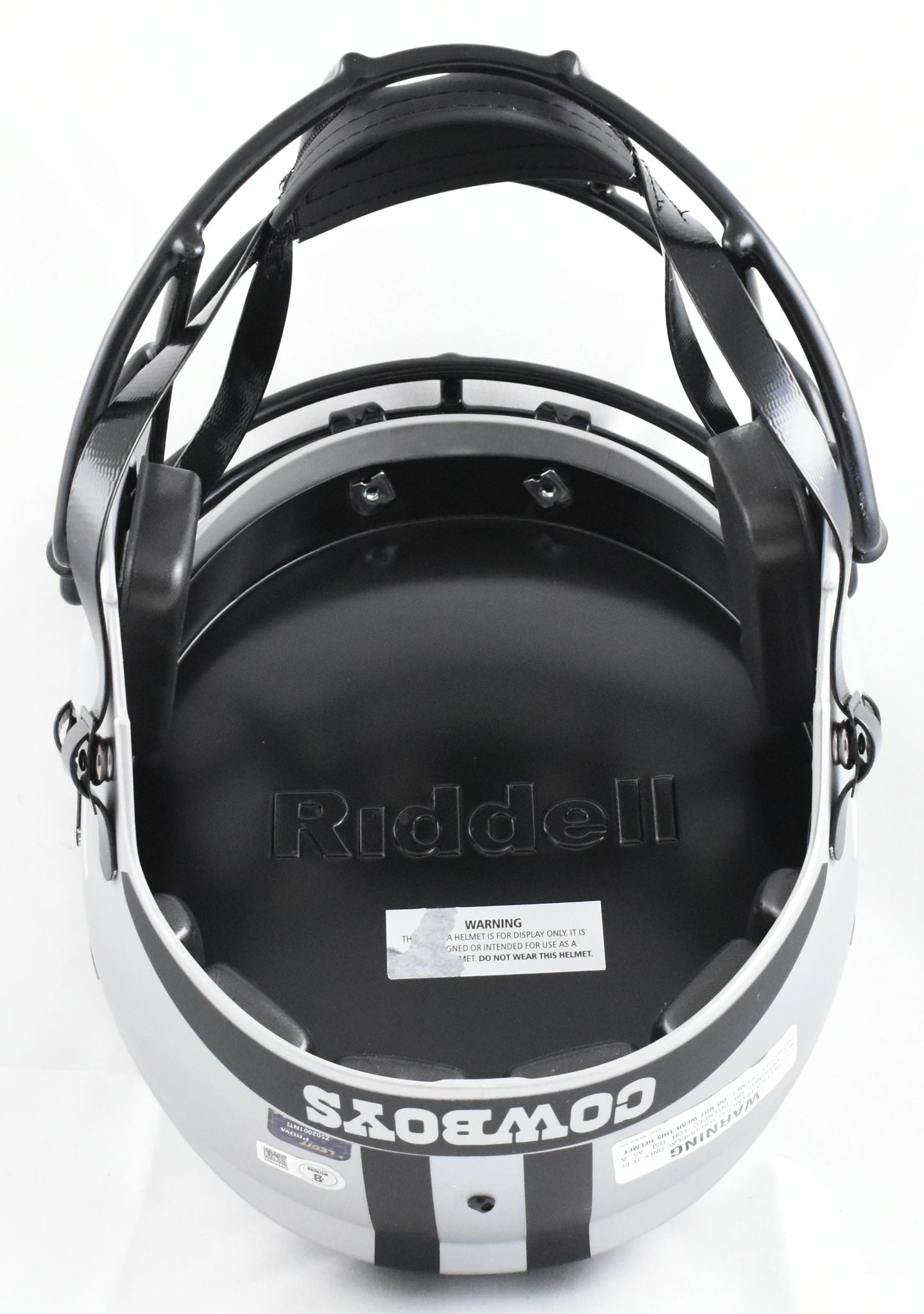 This is a Roger Staubach of the Dallas Cowboys Autographed Riddell football full size Rave Speed Replica Helmet. This item has a Beckett Witnessed Authentication, which comes with a numbered hologram and a QR code for verification. You can view this item on the Beckett Authentication website and it shows when and where the item was signed. It was signed either at a public autograph appearance or a private signing. This is a stock photo of the item. Although you may not receive this exact item, the item you receive is virtually identical, brand new, and in great shape. *Autograph location may vary*