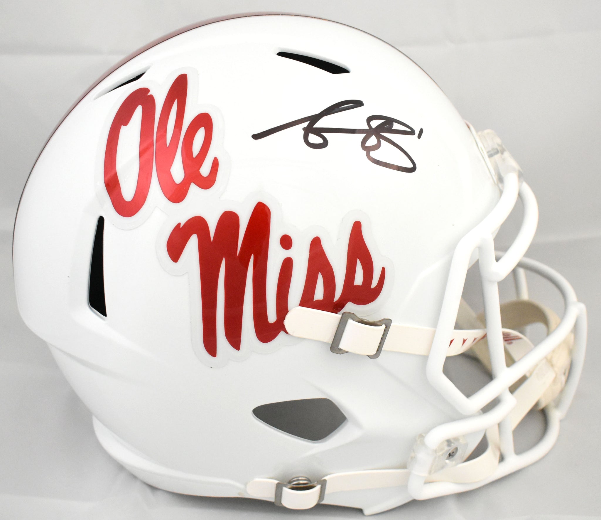 This is a A.J. Brown of the Ole Miss Rebels Autographed Riddell football full size Speed Replica helmet. This item has a Beckett Authentication, which comes with a numbered hologram and a QR code for verification. You can view this item on the Beckett Authentication website. It was signed either at a public autograph appearance or a private signing. This is a stock photo of the item. Although you may not receive this exact item, the item you receive is virtually identical, brand new, and in great shape. *Autograph location may vary*