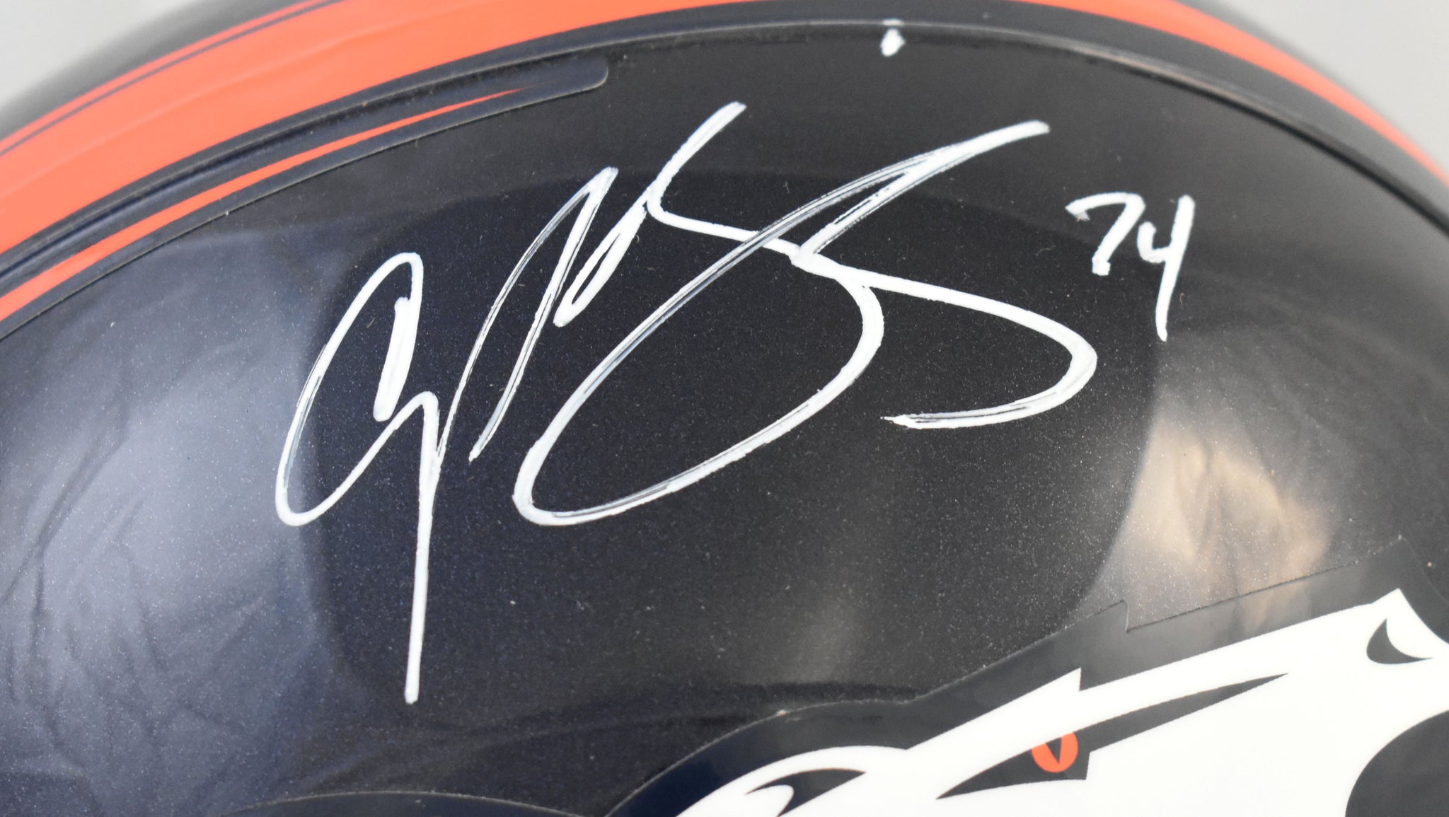 This is a Champ Bailey of the Denver Broncos autographed Riddell football full size Replica helmet. This item has a Beckett Witnessed Authentication, which comes with a numbered hologram and a Beckett COA. You can view this item on the Beckett Authentication website, and it shows when and where the item was signed. It was signed either at a public autograph appearance or a private signing. This is a stock photo of the item. Although you may not receive this exact item, the item you receive is virtually identical, brand new, and in great shape. *Autograph location may vary*