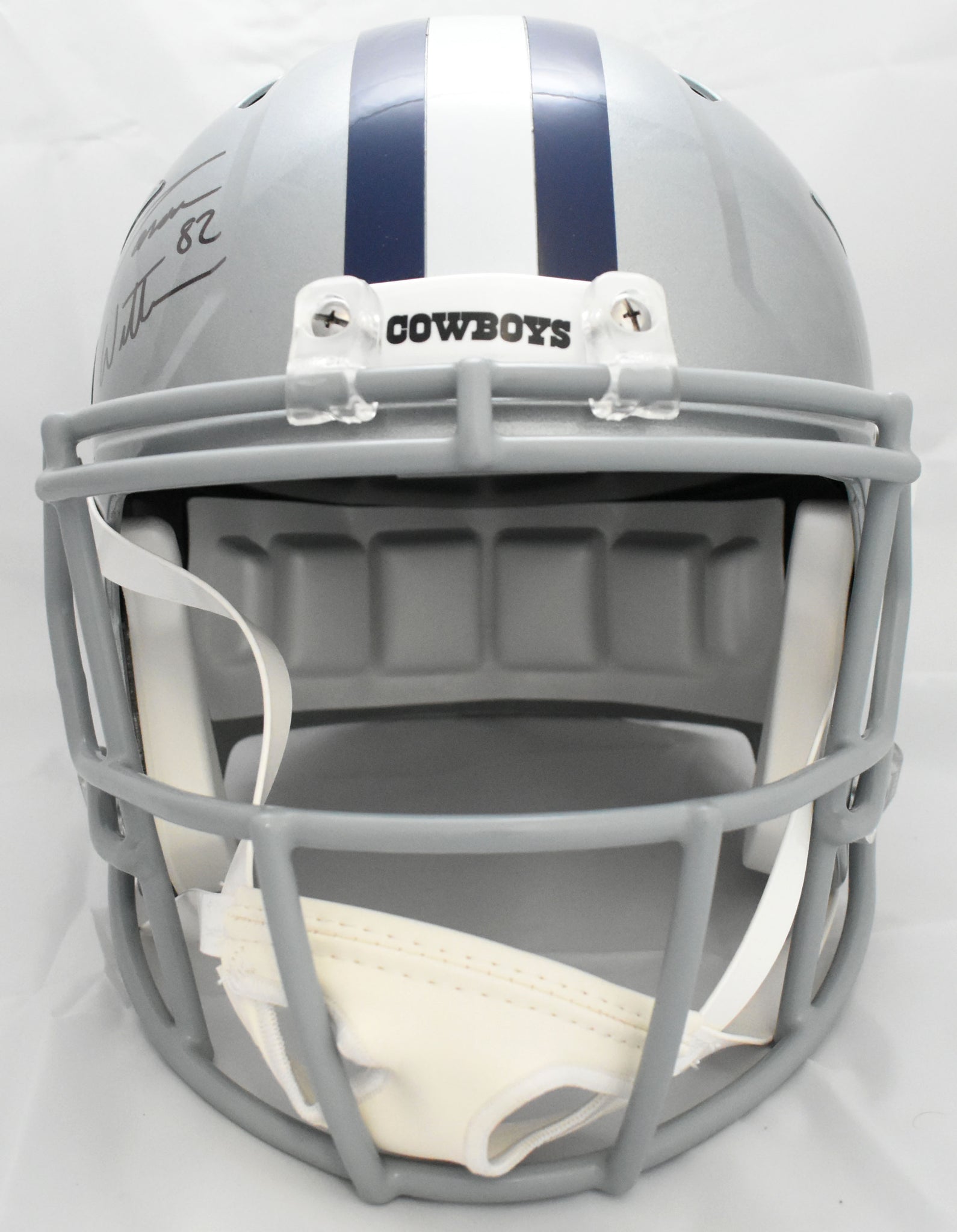 This is a Jason Witten of the Dallas Cowboys autographed Riddell football full size Speed Replica helmet. This item has a Beckett Witnessed Authentication, which comes with a numbered hologram and a QR code for verification. You can view this item on the Beckett Authentication website, and it shows when and where the item was signed. It was signed either at a public autograph appearance or a private signing. This is a stock photo of the item. Although you may not receive this exact item, the item you receive is virtually identical, brand new, and in great shape. *Autograph location may vary*