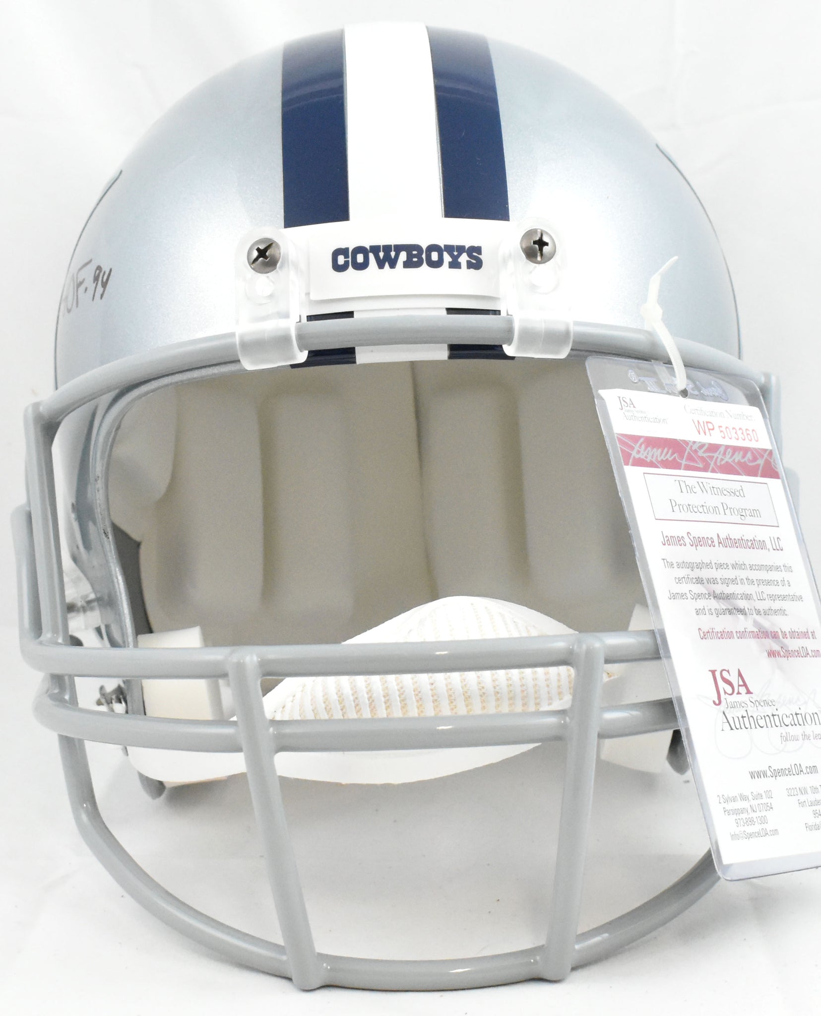 This is a Tony Dorsett of the Dallas Cowboys autographed Riddell football full size Replica helmet. Inscribed SB champs, ROY 77, 91 TD's, 12,739 yds, HOF 94. This item has a James Spence Witnessed Authentication, which comes with a numbered hologram and a matching JSA COA. You can view this item on the JSA Authentication website. It was signed either at a public autograph appearance or a private signing. This is a stock photo of the item. Although you may not receive this exact item, the item you receive is virtually identical, brand new, and in great shape. *Autograph location may vary*