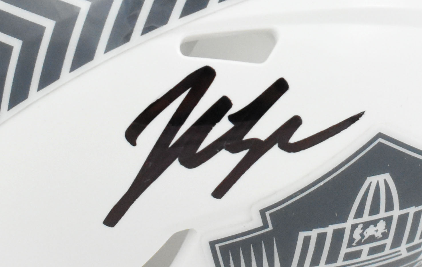 This is a hand autograph of John Lynch of the Tampa Bay Buccaneers on a Riddell Football Hall of Fame Salute to Service Speed Mini Helmet. This item has a Beckett Witnessed Authentication, which comes with a numbered hologram and a QR code for verification. You can view this item on the Beckett Authentication website, and it shows when and where the item was signed. It was signed either at a public autograph appearance or a private signing. This is a stock photo of the item. Although you may not receive this exact item, the item you receive is virtually identical and brand new in great shape.