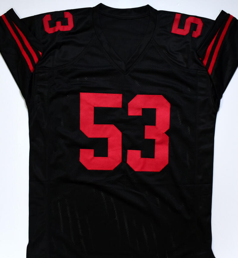 THIS IS NOT AN NFL JERSEY. THIS HAS NO TAGS, NO LOGOS, NO EMBLEMS. This is a Hand Autographed Jersey of NaVorro Bowman. This is Custom Made (Non Name Brand) Authentic Style (Stitched Letters and Numbers). This item has a Beckett Witnessed Authentication, which Comes with a Beckett #'ed hologram and a QR code for verification. You can view this item on the Beckett website. It was signed either at a public autograph appearance or a Private Signing. This is a stock photo of the item. Although you may not receive this exact item, the item you receive is virtually identical and brand new in great shape. We appreciate your interest in our items and we hope that we can make all transactions professional and satisfying. Jersey size is XL.