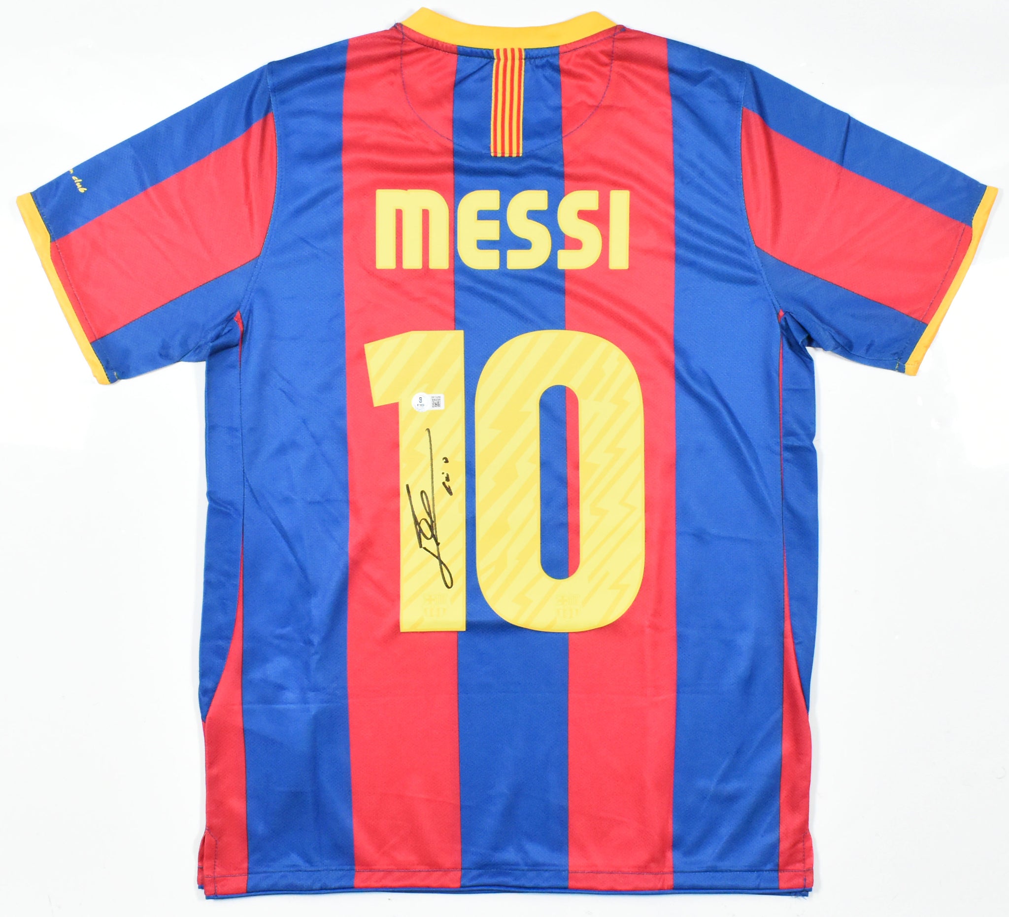 This is a hand autograph Nike Dri-Fit Jersey of Lionel Messi of Barcelona. This item has a Beckett Witnessed Authentication, which comes with a Beckett numbered sticker hologram and a QR Code for verification. You can view this item on the Beckett Authentication website. It was signed either at a public autograph appearance or a private signing. This is a stock photo of the item. Although you may not receive this exact item, the item you receive is virtually identical and brand new in great shape. Jersey size is M.