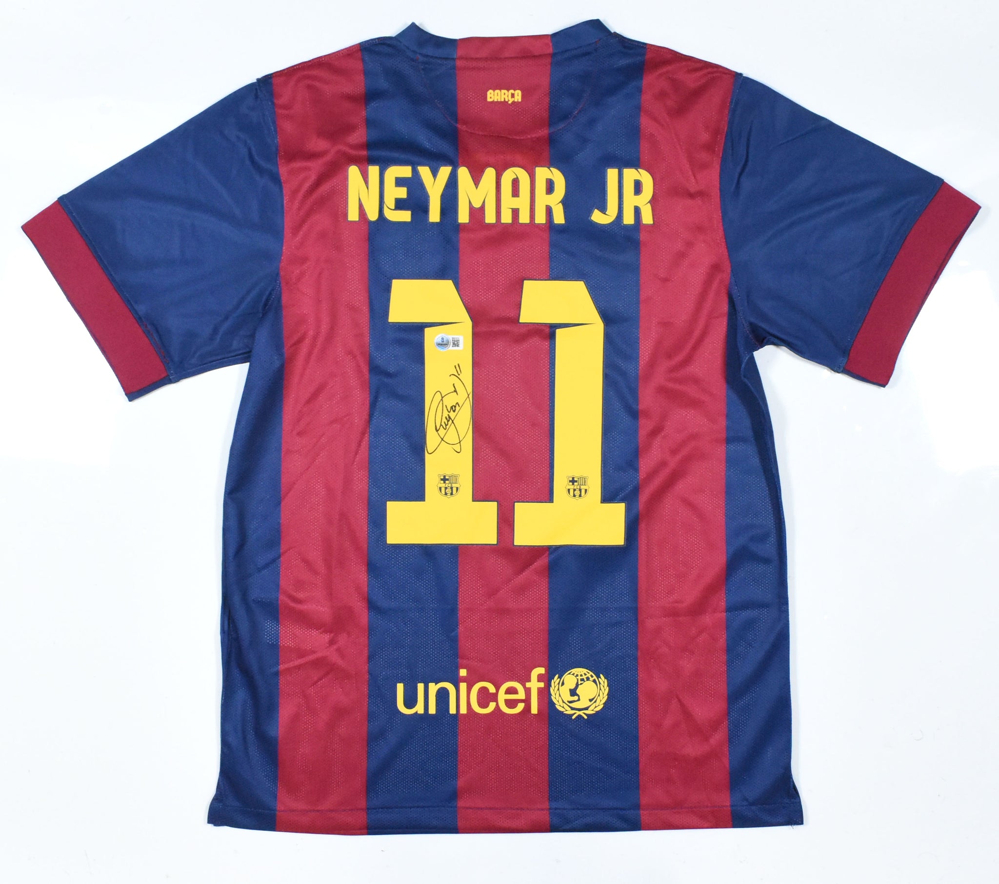 This is a hand autograph Nike Dri-Fit Jersey of Neymar JR of FC Barcelona. This item has a Beckett Authentication, which comes with a Beckett numbered sticker hologram and a QR Code for verification. You can view this item on the Beckett Authentication website. It was signed either at a public autograph appearance or a private signing. This is a stock photo of the item. Although you may not receive this exact item, the item you receive is virtually identical and brand new in great shape. Jersey size is L.