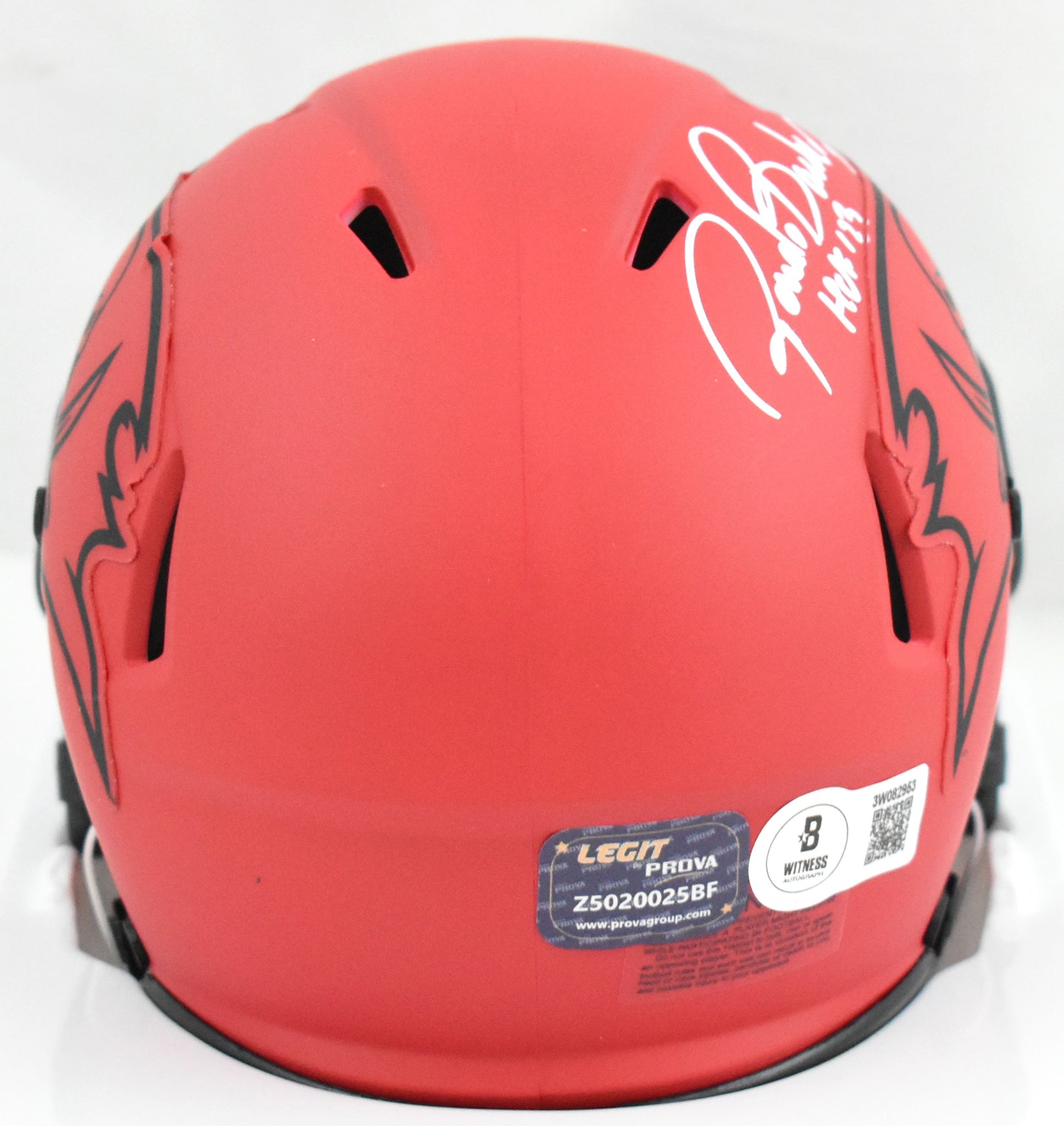 This is a hand autograph of Ronde Barber of the Tampa Bay Buccaneers on a Riddell Football Rave Speed Mini Helmet. Inscribed HOF. This item has a Beckett Witnessed Authentication, which comes with a numbered hologram and a QR code for verification. You can view this item on the Beckett Authentication website, and it shows when and where the item was signed. It was signed either at a public autograph appearance or a private signing. This is a stock photo of the item. Although you may not receive this exact item, the item you receive is virtually identical and brand new in great shape.