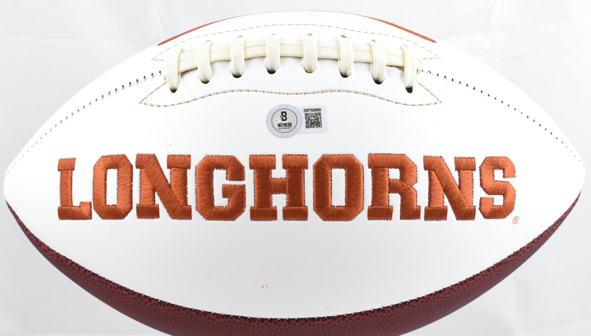 This is a hand autographed Football of Colt McCoy of the Texas Longhorns. This is a Texas Longhorns Logo Football. This item has a Beckett Witnessed Authentication, which comes with a numbered hologram and a QR code for verification. You can view this item on the Beckett website, it shows when and where the item was signed. It was signed either at a public autograph appearance or a private signing. This is a stock photo of the item. Although you may not receive this exact item, the item you receive is virtually identical and brand new in great shape.
