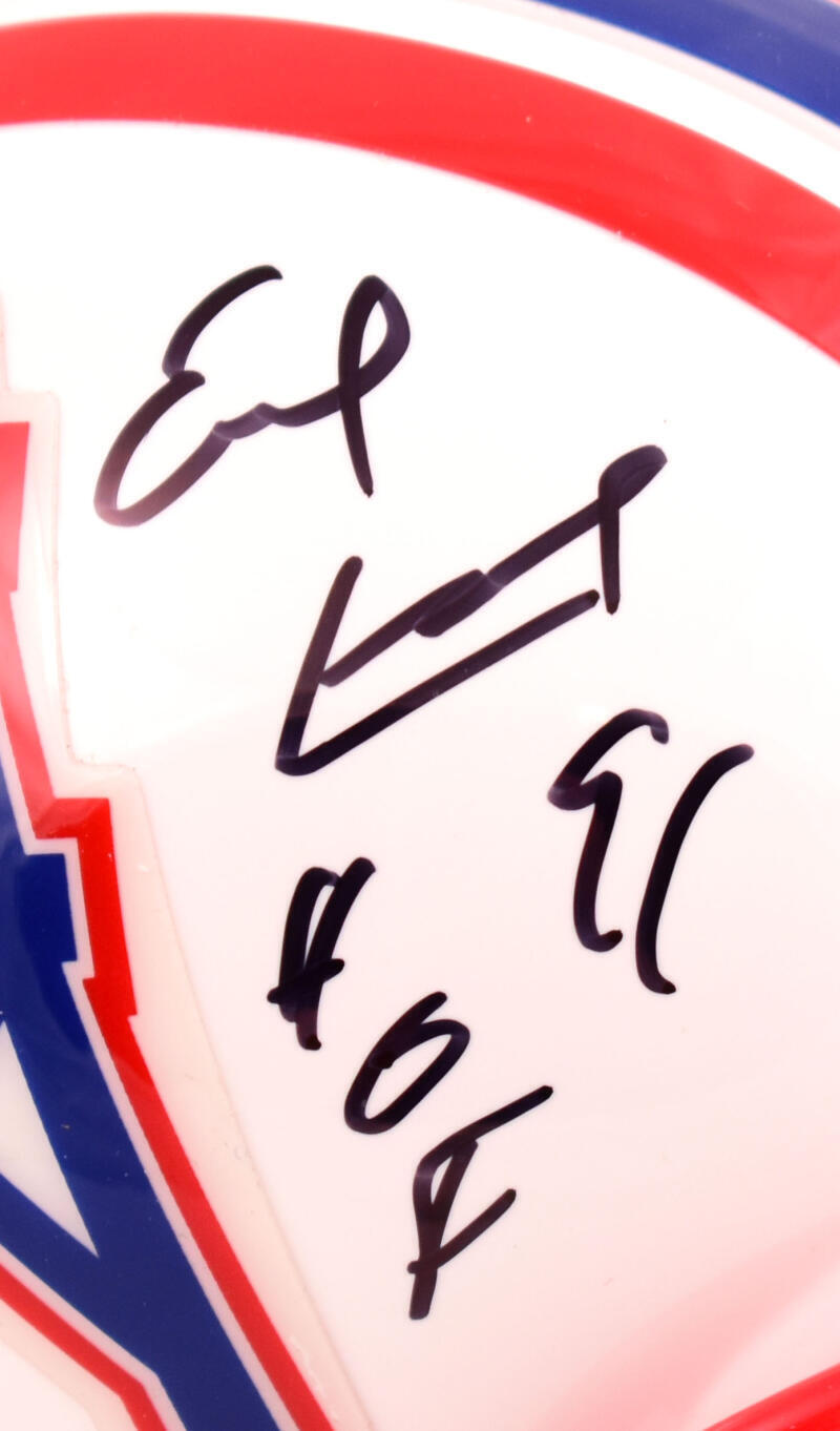 This is an Earl Campbell and Warren Moon of The Houston Oilers hand autographed Riddell Football 81-96 Throwback Mini Helmet. Inscribed HOF. This item has a Beckett Witnessed Authentication, which comes with a Beckett numbered hologram and a QR code for verification. You can view this item on the Beckett website, it shows when and where the item was signed. It was signed either at a public autograph appearance or a private signing. This is a stock photo of the item. Although you may not receive this exact item, the item you receive is virtually identical, brand new, and in great shape.
