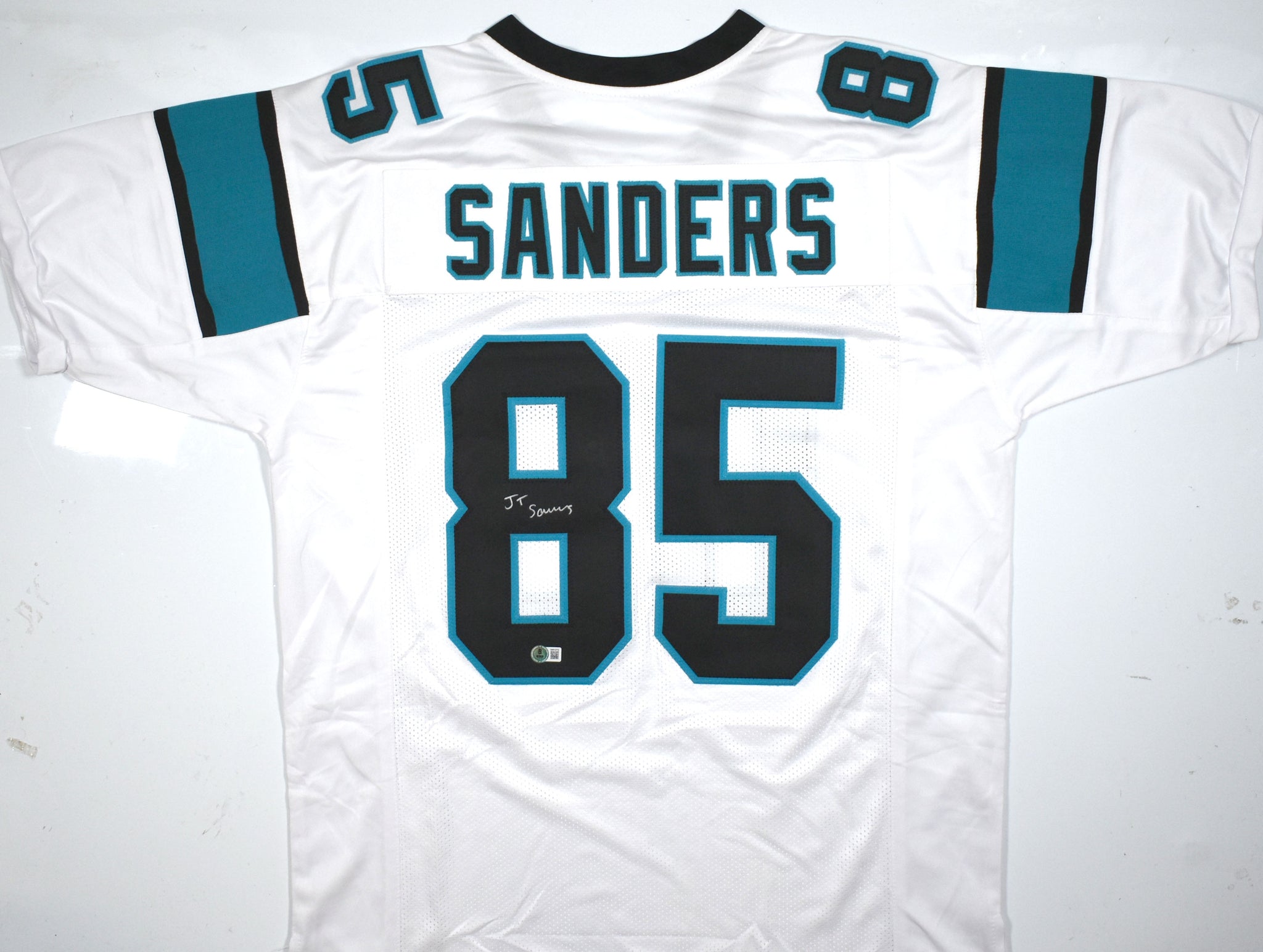 THIS IS NOT AN NFL JERSEY. THIS HAS NO TAGS, NO LOGOS, NO EMBLEMS. This is a hand autograph of Ja'Tavion Sanders on a Custom Made (non name brand) Authentic Style Jersey with stitched letters and numbers. This item has a Beckett Witnessed Authentication, which comes with a numbered hologram and a QR code for verification. You can view this item on the Beckett Authentication website and it shows when and where the item was signed. It was signed either at a public autograph appearance or a private signing. This is a stock photo of the item. Although you may not receive this exact item, the item you receive is virtually identical and brand new in great shape. Jersey size is XL.