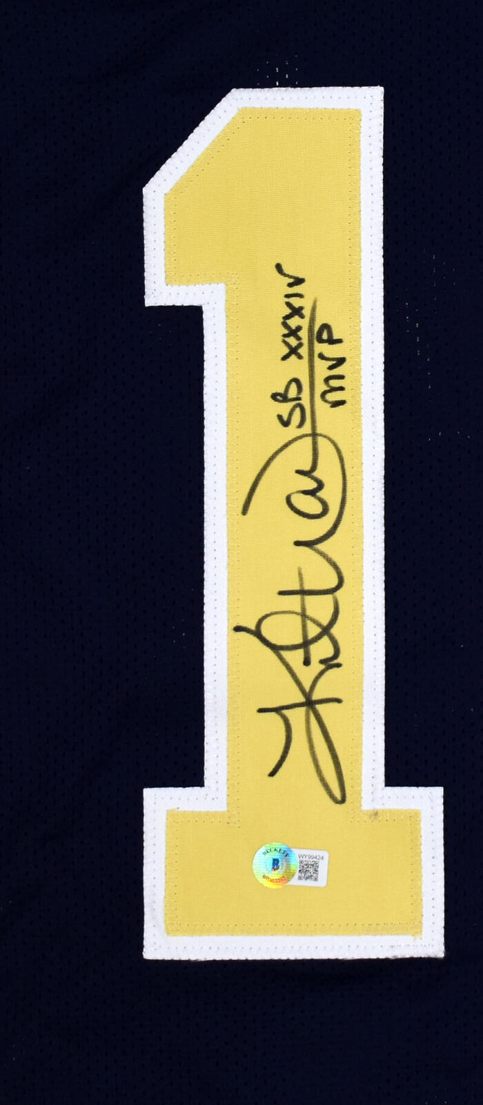Kurt Warner Autographed Blue Gold Pro Style Jersey w/ SB MVP -Beckett W Hologram *Black